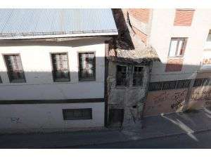 Sivas'ta konağın ve apartmanın arasında adeta kaybolan 2 metre enindeki 2 katlı eski ev görünümüyle dikkat çekiyor.