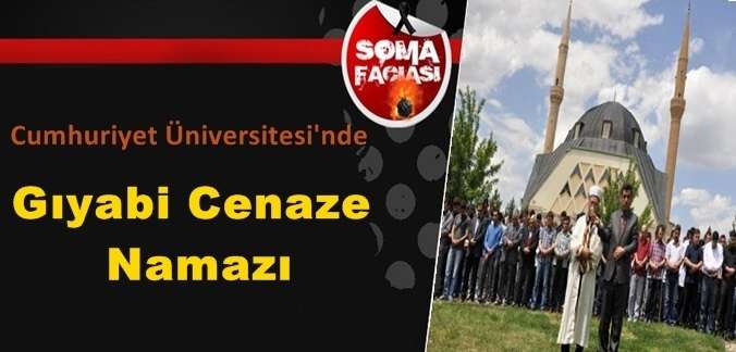 Sivas Cumhuriyet Üniversitesi (CÜ) Rektörlüğü tarafından Soma'da yaşamını yitiren maden işçileri için mevlit okutularak cuma namazından sonra gıyabi cenaze namazı kılındı.