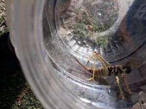 Sivas'ta iki çiftçi arkadaş bahçede çalışırken buldukları dev çekirgeyi bir hafta boyunca üzümle besledi.