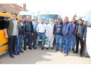 Tüm taşımacılık yapan araçlarda uygulanan dezenfekte işlemini ardından minibüs yazıhaneleride ilaçlandı.