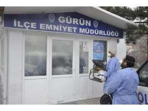 Sivas'ın Gürün ilçesinde koronavirüse karşı ekiplerin dezenfekte ve temizlik çalışmaları aralıksız devam ediyor.