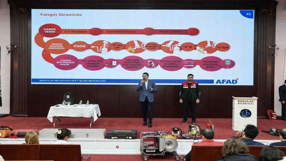 İstanbul’daki riskli yapıların acilen dönüştürülmesi gerektiğini belirten Murat Kurum, “Çevre, Şehircilik ve İklim Değişikliği Bakanlığı görevini yürüttüm. Ülkemizde nerede bir afet olsa arama kurtarma ekiplerimizle birlikte orada omuz omuza mücadele ettik. Ülkemiz bir deprem ülkesi. Maalesef nüfusumuzun yaklaşık yüzde 70’i deprem bölgelerinde yaşıyor. Yaşadığımız depremlerde, bir asırda 130 bin canımızı yitirdik. Depremle mücadele etmeyi öğrenmek, deprem gerçeğiyle birlikte yaşamak zorundayız. İstanbul’umuz da maalesef bir deprem şehri. Bilim insanlarımız, hocalarımız bize İstanbul’da bir deprem olacağı gerçeğini her zaman ifade ediyorlar. Peki biz ne yapmalıyız? Bir taraftan olası depremlerde ne yapacağımızı bilmemiz, diğer taraftan da en kısa zamanda riskli binalarımızı dönüştürmemiz gerekir. Bu ikisi bugün İstanbul için, ülkemiz için en önemli gündemlerden biridir. Deprem dönüşümü terörle mücadele kadar önemlidir. Gittiğimizde o enkazlarda yavrusunu, annesini, yakınlarını bekleyen ailelerin feryadına şahit oldum. Malatya’da, Elazığ’da, İzmir’de asrın felaketinin ardından Kahramanmaraş Pazarcık’ta, 11 ilimizde. Günlerce oradaydım ve emin olun şu görmüş olduğunuz makas, jeneratör, hilti o gün o saat o kadar önemli, o kadar değerli ki, depreme hazırlıklı yakalanmanız çok kıymetli. ‘Enkazın altından benim yavrumu çıkart’ diyor. ‘Enkazın altından benim annemi çıkarın’ diyor. Büyük bir afet karşısında da biz hazırlıklarımızı yapmak zorundayız” şeklinde konuştu.