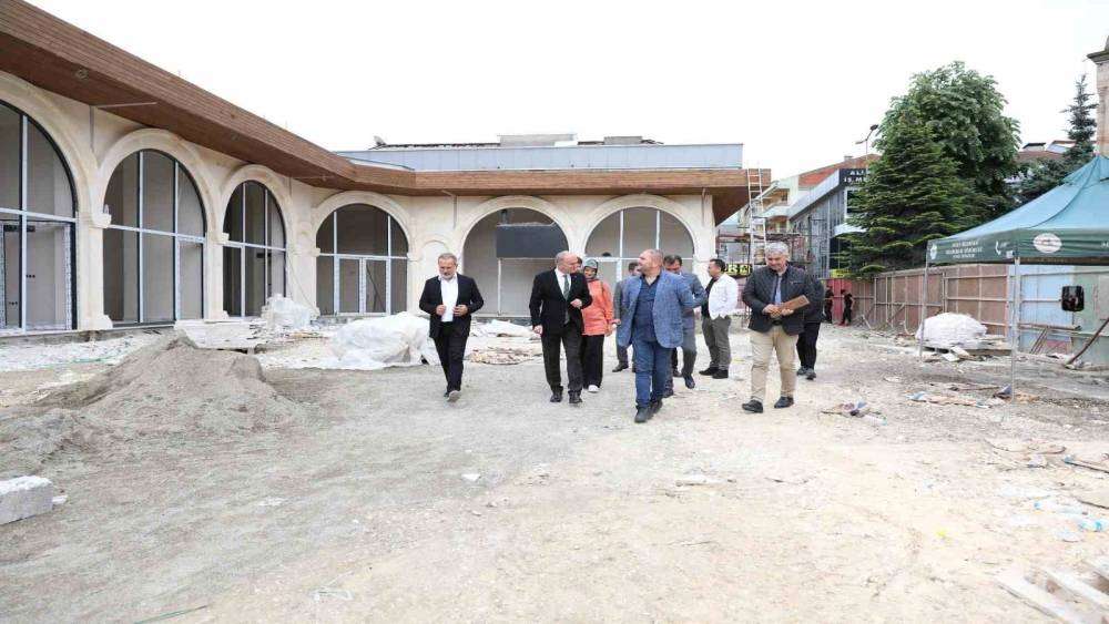 Cedidiye Cami ile uyumlu ve bütünlük oluşturacak şekilde yapımı devam eden çalışmalar hakkında proje yetkililerinden bilgi alan Başkan Faruk Özlü, dükkanların iç kısımlarını da gezerek, projenin kalan kısımlarının da kısa sürede tamamlanarak vatandaşların hizmetine sunulması için talimat verdi.