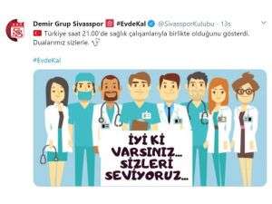 DG Sivasspor Kulübü, sosyal medya hesabından korona virüsü salgını nedeniyle yoğun çalışan sağlık görevlileri için anlamlı bir paylaşımda bulundu.