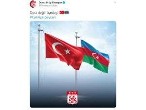 Azerbaycan ile Ermenistan arasında yaşananlara Sivasspor da kayıtsız kalmadı. Kırmızı-beyazlı kulüp, sosyal medya hesaplarından Türkiye ile Azerbaycan bayraklarını yan yana paylaşarak, "Dost değil, kardeş! Can Azerbaycan" mesajı verdi.