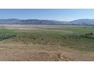 Suların çekildiği baraj gölü, hayvanlara otlak oldu