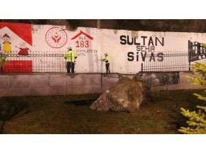 Sivas'ta sağanak yağmurun etkisi ile Yukarı Tekke mevkiinde, yamaçtan kopan kaya parçaları Aile Çalışma ve Sosyal Hizmetler İl Müdürlüğü'nün bahçesine düştü.