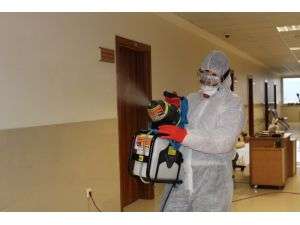 Sivas Cumhuriyet Başsavcılığı tarafından, koronavirüs (Kovid-19) tehdidi nedeniyle Adliye binasında dezenfektasyon çalışmaları gerçekleştirildi. Adliye binasında ki asansörler, koridorlar, mahkeme salonları, hakim-savcı ve kalem odalarının yanı sıra vatandaşların kullandığı alanları ilaçlı suyla temizlendi.