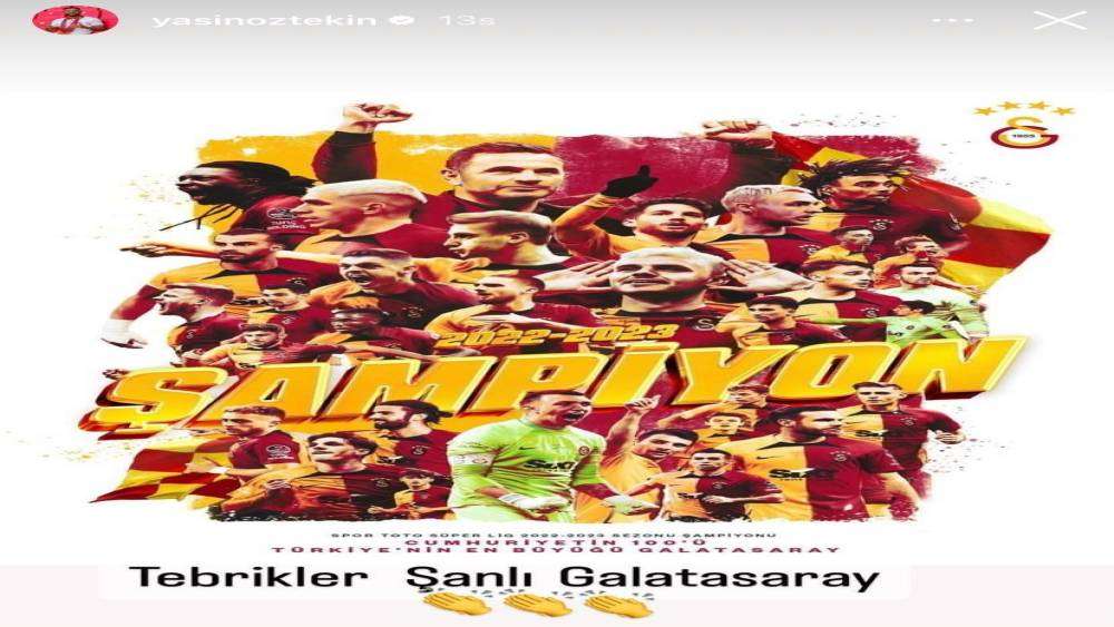 Göztepe’nin 36 yaşındaki kanat oyuncusu Yasin Öztekin, Süper Lig’de şampiyonluğunu ilan eden Galatasaray’ın zaferini sosyal medyadan kutladı. Tecrübeli oyuncu, resmi sosyal medya hesabından yaptığı paylaşımda şampiyonluk görselinin altına ‘Tebrikler Şanlı Galatasaray’ yazısını ekledi ve takipçileriyle paylaştı.