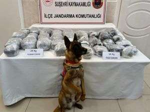 Kaçakçılık ve Organize Suçlarla Mücadele Şube Müdürlüğü ve Suşehri İlçe Jandarma Komutanlığı ekipleri, alınan duyum üzerine D-100 karayolunun ilçe girişinde bir yolcu otobüsüne operasyon yaptı. Ekipler tarafından durdurulan 34 EOL 687 plakalı yolucu otobüsündeki E.B. (37) ve M.A. (26) isimli şahıslara uyuşturucu madde köpeğinin tepki vermesi üzerine şahısların valizlerinde arama yapıldı. Valizlerde iki koli halinde 16 kilo toz esrar, 24 kilo kubar esrar maddesi olmak üzere toplam 40 kilo uyuşturucu ele geçirildi. Olayla ilgili Cumhuriyet Savcılığına bilgi verilerek, gözaltına alınan 2 şahıs adli mercilere sevk edildi.