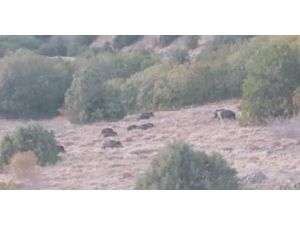 Domuzların sürüler halinde gezindiğini belirten Özcan Çelik, "Hayvanlarımı getirmek için dağa gitmiştim, aninden karşıma domuzlar çıktı. Domuzlar yaklaşık 20 taneydi. Ben de cebimden çıkardığım telefonumla onları görüntüledim. Yılın bu mevsiminde sürüler halinde geziyorlar" dedi.