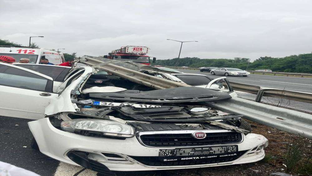 Anadolu Otoyolu Sakarya geçişinde sürücüsünün kontrolünden çıkan otomobil, bariyerlere adeta ok gibi saplandı. Kazada 1’i ağır olmak üzere toplam 3 kişi yaralandı.