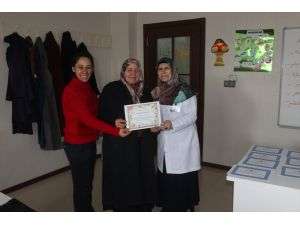 KONYA (AA) - Karapınar Aile, Sanat ve Eğitim Merkezi’nde (ASEM) Kur’an-ı Kerim ve Değerler Eğitimi alan kursiyerlere belgeleri törenle verildi.