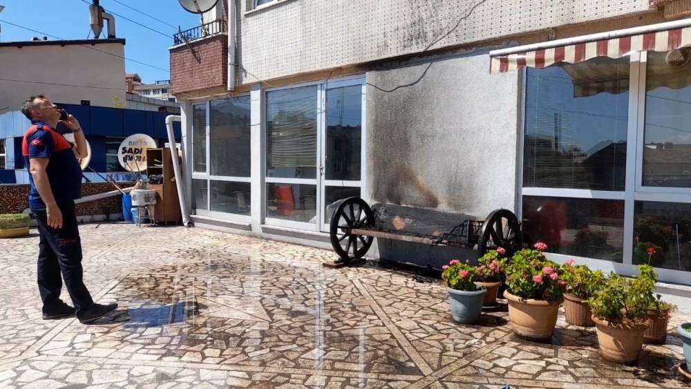 Zonguldak’ın Ereğli ilçesinde bir apartmanın terasında bulunan banka atılan izmarit yangına neden oldu.