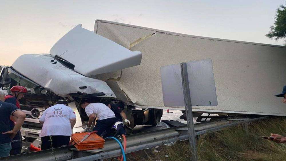 Bariyerlere çarpan tır ters döndü, 1 kişi hayatını kaybetti