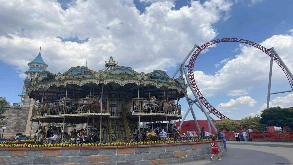 "Tema parka geldik oyun oynuyoruz çok eğlenceli geçiyor"