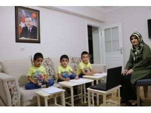 Sivas'ta yaşayan Recep, Tayyip ve Erdoğan isimli 6 yaşındaki üçüz kardeşler, evlerinde oluşturdukları sınıf ortamında okumayı ve yazmayı öğrenerek...