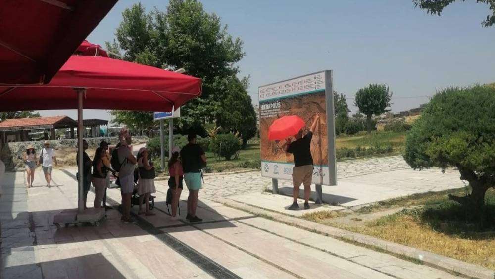 Denizli’nin Pamukkale Hierapolis ve Leodikeia antik kenti bölgelerinde Aydın Turist Rehberleri Odası (ATRO) ve Turist Rehberleri Birliği (TUREB) işbirliği ile denetim gerçekleştirildi. Denetimde, iki adet belgesiz rehberlik faaliyeti, bir adet dili dışı çalışan rehber ve iki adet meslek ilkelerine aykırı hareket eden rehber tespit edilirken sorumlularına cezai işlem uygulandı.