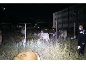 Kaybolan inek sürüsü üniversite yerleşkesine girdi