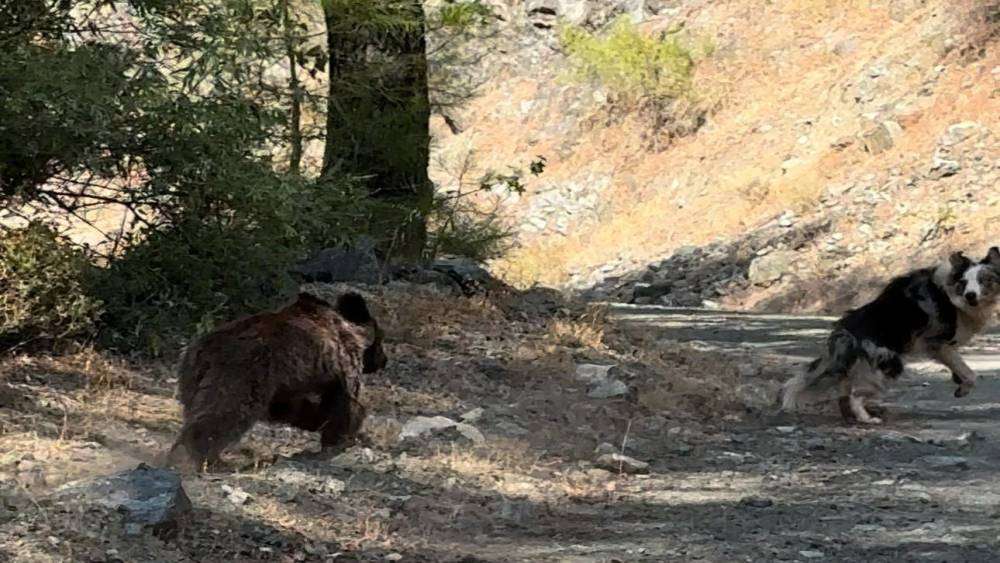 Köpeği ile gezerken yavru ayı ile karşılaştı