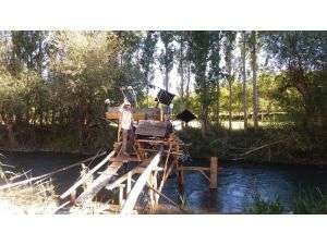 Çalışkan, inşaat atığı sac ve tahtaları kullanarak geliştirdiği düzeneği neredeyse tek kuruş harcamadan yaptı. Hiçbir gideri bulunmayan düzenek çaydan aldığı suyu yükselterek tarlaya akmasını sağlıyor.