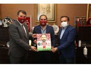 Türkiye Spor Yazarları Derneği Sivas Şube Başkanı Kemal Çağlayan, Türkiye'yi UEFA Avrupa Ligi'nde temsil edecek DG Sivasspor'a başarılar dileyerek günün anısına Kulüp Başkanı Mecnun Otyakmaz'a tablo takdim etti.