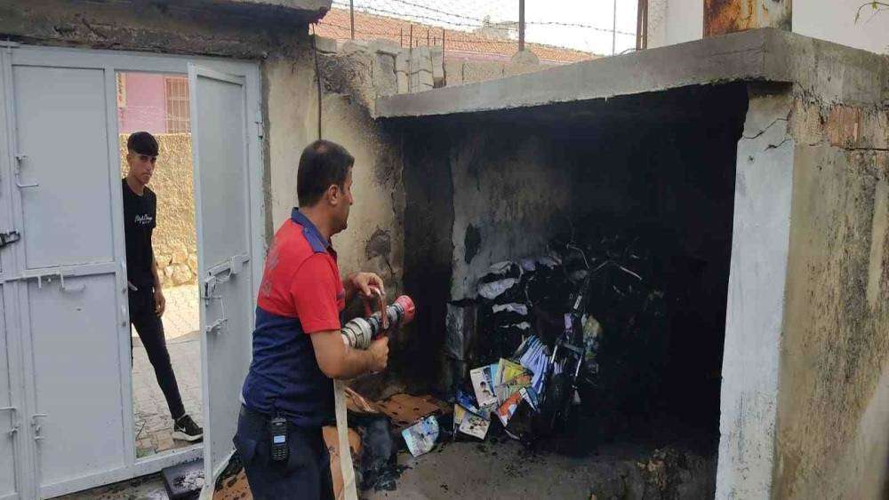 Mardin’in Nusaybin ilçesinde bir evin deposunda çıkan yangında, depodaki malzemeler kullanılmaz hale geldi.