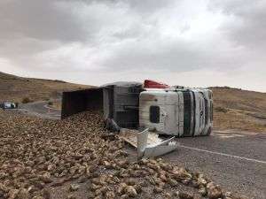 Pancar yüklü tır devrildi: 1 yaralı