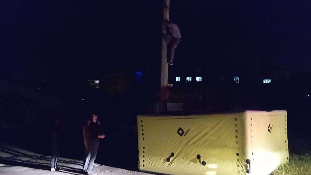 Olay Kale Mahallesi Kale 1. Sokak’ta meydana geldi. Edinilen bilgiye göre, alkollü olduğu öğrenilen İ.K. (58) sokak üzerindeki aydınlatma direğine çıktı. İ.K.’yi direkte gören vatandaşların ihbarı üzerine olay yerine Çorum Belediyesi itfaiye ekibi, 112 sağlık ekibi ve polis ekibi sevk edildi. Polis ekipleri tarafından çevrede güvenlik önlemi alınırken, bu sırada itfaiye aracının sepetine çıkan bir polis memuru, şahsın dalgınlığını fırsat bilerek İ.K.’yi belinden tutarak sepet içerisine çekti. Aşağıya indirilen şahıs olay yerindeki tedavisinin ardından ifadesi alınmak üzere polis merkezi amirliğine götürüldü.