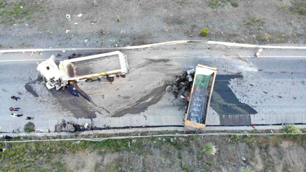 Öte yandan kazaya karışan kamyonlar havadan görüntülendi.