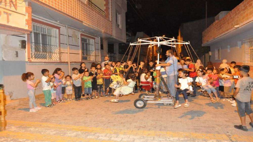 Şanlıurfa’nın Suriye sınırında yer alan Ceylanpınar ilçesinde mahalle muhtarı, çocuklara sürpriz yaparak getirttiği seyyar dönen salıncağa bindirip eğlenmelerini sağladı.Suriye sınırında yer alan Şanlıurfa’nın Ceylanpınar ilçesinde çocuklar mahalle muhtarının sürpriziyle gönüllerince eğlendi. Turgut Özal Mahallesi Muhtarı Rıdvan Aydın, Kurban Bayramı’nda Şanlıurfa merkeze ya da ilçedeki parklara gidemeyen çocuklara sürpriz yaptı. Mahalleye dönen salıncak getirten muhtar, çocukların binmesini sağladı.Mahalle Muhtarı Rıdvan Aydın, “90’lı yıllarda çok ama çok popüler olan seyyar dönme dolap. Zamanında biz bunu yaşadık, çok mutlu olduk. Biz de bu mutluluğu mahalledeki bütün çocuklara yaşatmak için seyyar dönme dolabı getirdik. Onlarla çok güzel vakit geçirdik. Çok mutlu oldular. Malumunuz Ceylanpınar’da herhangi bir alışveriş merkezi olmadığı için çocukların oynayıp mutlu olacağı bir yer de yok. Biz de elimizden gelen imkanlar dahilinde çocukları mutlu etmeye çalıştık ve ettik” diye konuştu.Çocuklar ise dönme salıncağa bindikleri için çok mutlu olduklarını dile getirdi.