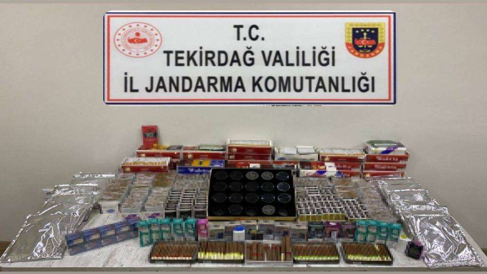 Tekirdağ’ın Çerkezköy ilçesinde kaçak sigaraya yönelik yapılan çalışmada bandrolsüz sigara ve tütün ele geçirildi.Tekirdağ İl Jandarma Komutanlığı ekiplerince Çerkezköy Fatih Mahallesi’nde bir işletmede bandrolsüz makaron, elektronik sigara ve puro satışı yapıldığı tespit edildi. 28 Ağustos 2024 tarihinde gerçekleştirilen aramada, çeşitli yasa dışı tütün ürünleri ele geçirildi.Yapılan aramada, 23 adet elektronik sigara, 7 bin 280 adet içi tütünle doldurulmuş bandrolsüz makaron, 1600 adet bandrolsüz boş makaron, 110 adet bandrolsüz puro, 17 kilogram bandrolsüz nargile tütünü, 2 kilogram açık tütün ve 10 paket bandrolsüz sigara ele geçirildi. Şüpheli M.Y., ifadesinin alınmasının ardından serbest bırakıldı.