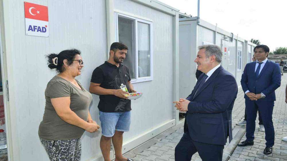 Adana Valisi Süleyman Elban, İçişleri Bakan Yardımcısı Mehmet Sağlam’la birlikte Şambayadı Konteyner Kent’te yaşayan depremzedelerin bayramını kutladı.