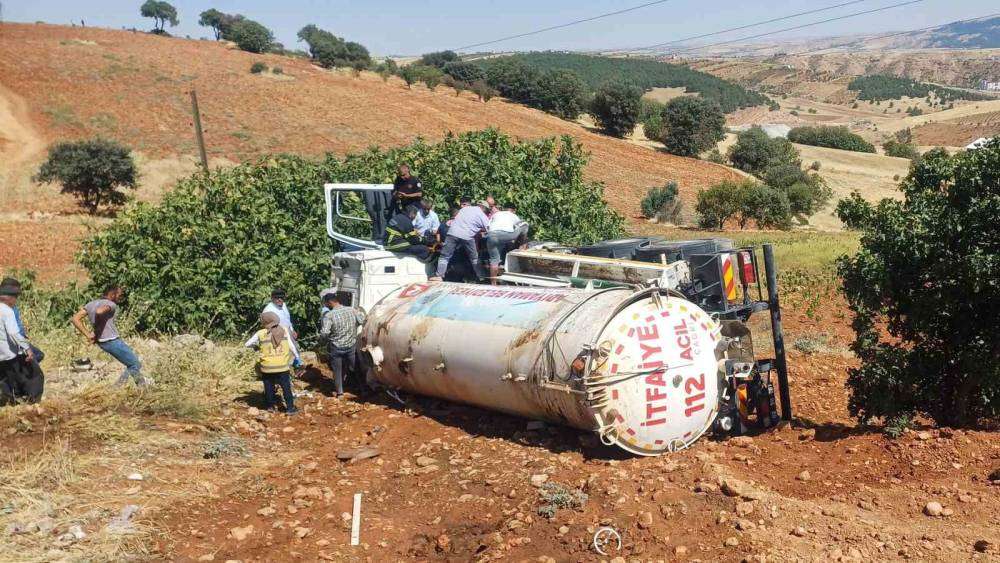 Yangına giden itfaiye tankeri şarampole devrildi: 1 yaralı